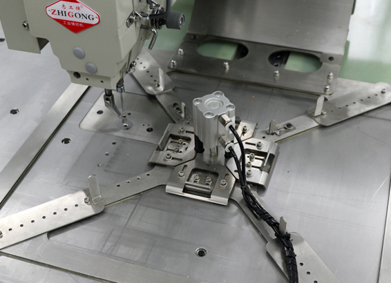 該產品是志工為集裝袋行業設計的電子花樣縫紉機產品之一,專門根據集裝袋十字口部分的標準特點和員工的操作手法等不同情況,進行了專門深入的研究,對產品的傳動結構進行了大膽改進創新,使之成為實現集裝袋縫紉高速度、高品質目標的利器。