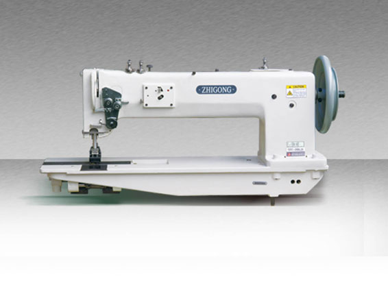 采用大型立式旋梭勾線、滑桿挑線;分為單針、雙針兩種機型,上下軸用軸承支承,同步齒形帶傳動,三同步綜合送料:機針、送布牙和壓腳交叉升降機構,保證在額定范圍內的任何長度針距下、縫紉滑性、粘性縫料及特長制品時上下層不位移、使縫制品整齊、線跡美觀。